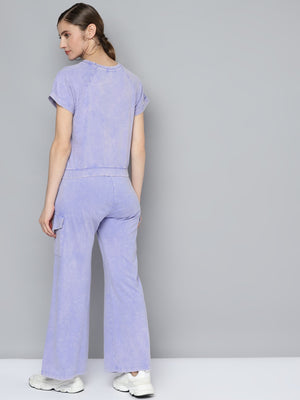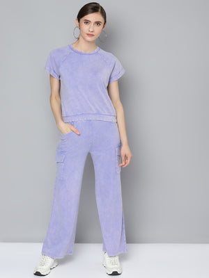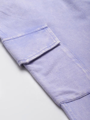 Crafted in a stunning washed lilac shade, this set combines the comfort of cotton with a fashionable mineral wash effect. The pants feature practical cargo pockets and a relaxed silhouette that's perfect for both lounging and street style.