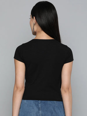 The innovative ruched design with front ties allows for customizable styling, while the V-neckline and cap sleeves create a flattering silhouette. Made from high-quality stretch fabric, this versatile piece combines comfort with glamour.